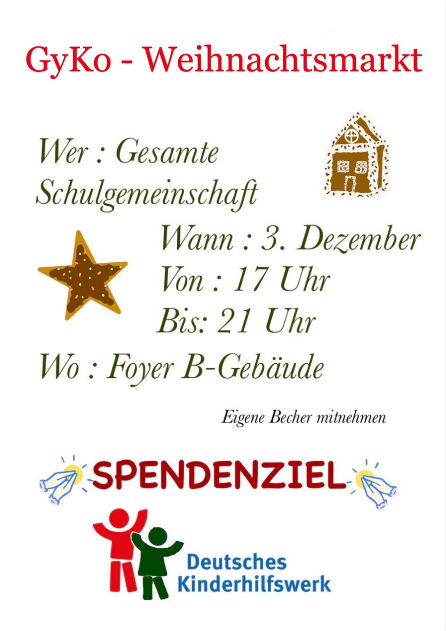 Seit 2023 nimmt das GyKo am Erasmus+ Programm der Europäischen Union teil, das Schülerinnen und Schülern die Möglichkeit bietet, internationale Erfahrungen zu sammeln. Erasmus+ ist ein Förderprogramm der Europäischen Union für Bildung, Jugend und Sport. Es unterstützt Schulpartnerschaften, Schüleraustausche und Lehrerfortbildungen in Europa und hat zum Ziel die Begegnung zwischen den europäischen Bürgerinnen und Bürgern zu fördern. Weitere Informationen